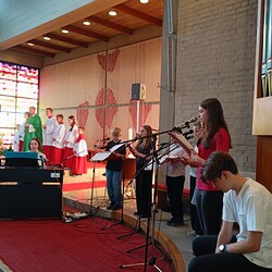 "Gesegnet in den Sommer" war das Thema des Gottesdienstes am Ferienbeginn. Wunderschöne Lieder vom Jugendchor, tolle Gedanken und Impulse von Pfarrer Claudiu Budau zu den Bibelstellen auch in Bezug auf die Sommersymbole vor dem Altar halfen uns gut behütet (Strohhut), mit einem neuen Blickwinkel (Sonnenbrille) und uns auf neue Themen einstellend (Zeitschrift) in die Sommermonate zu starten.