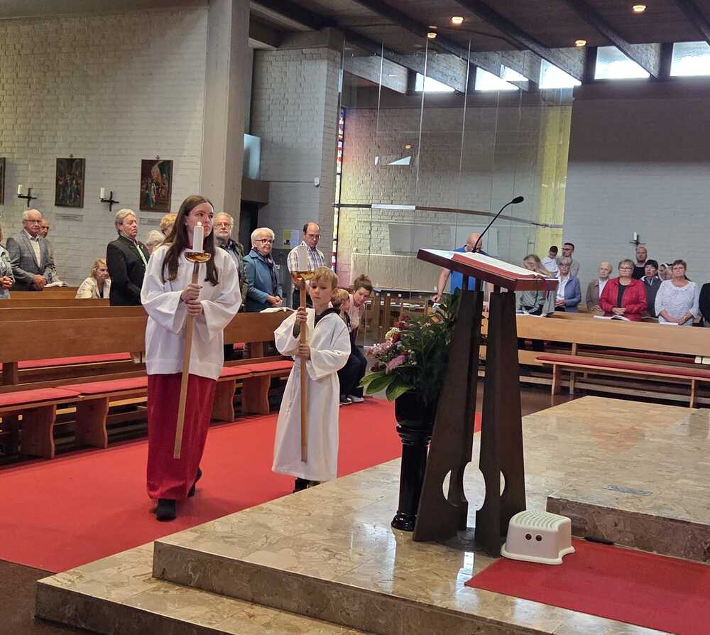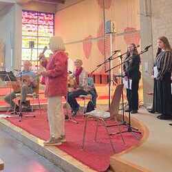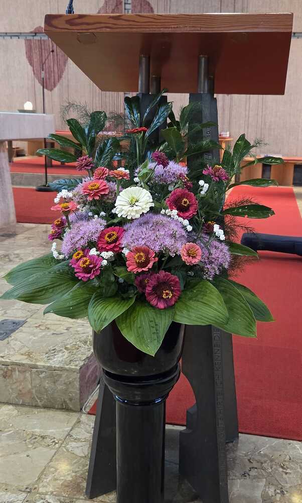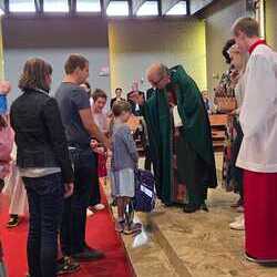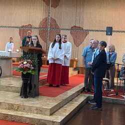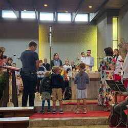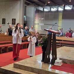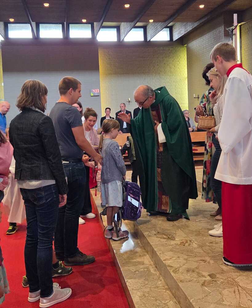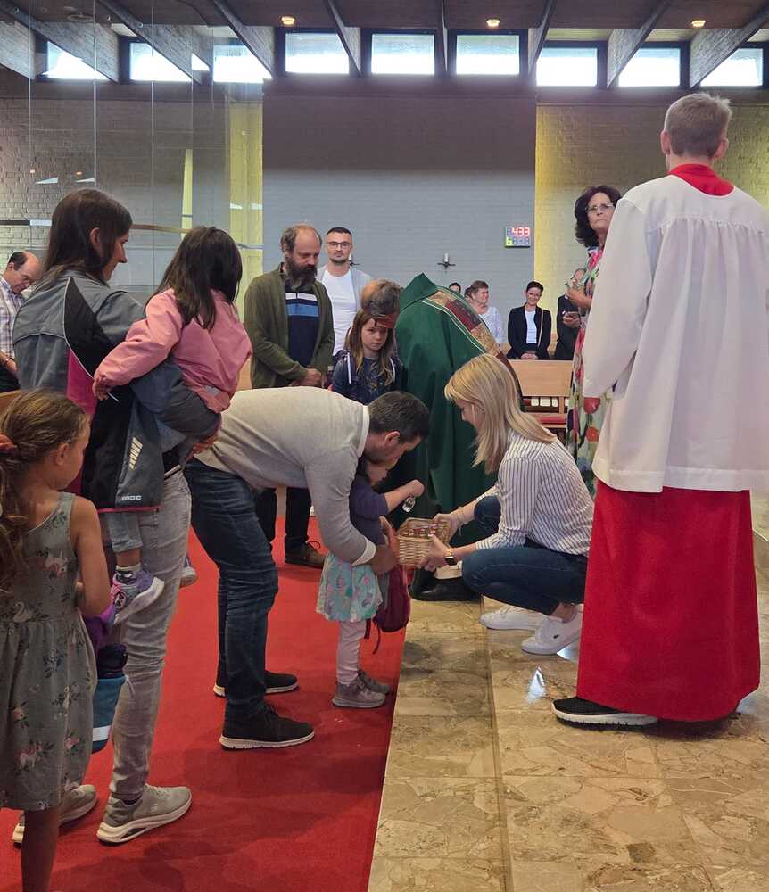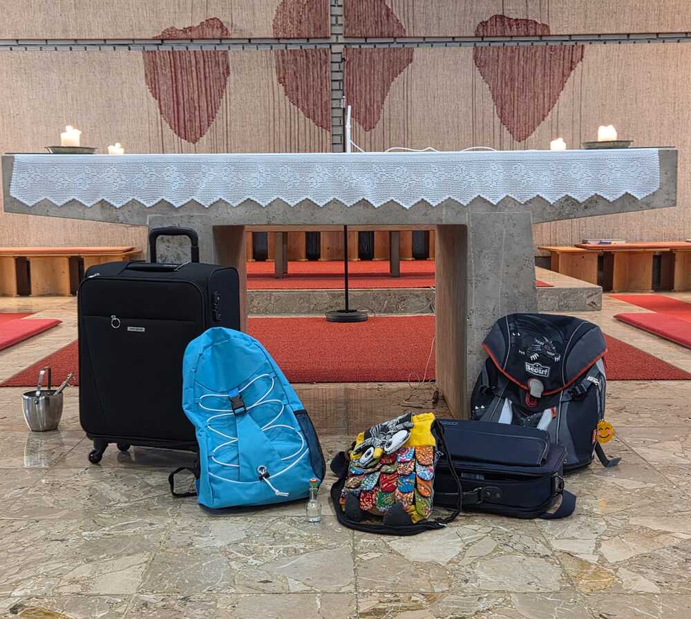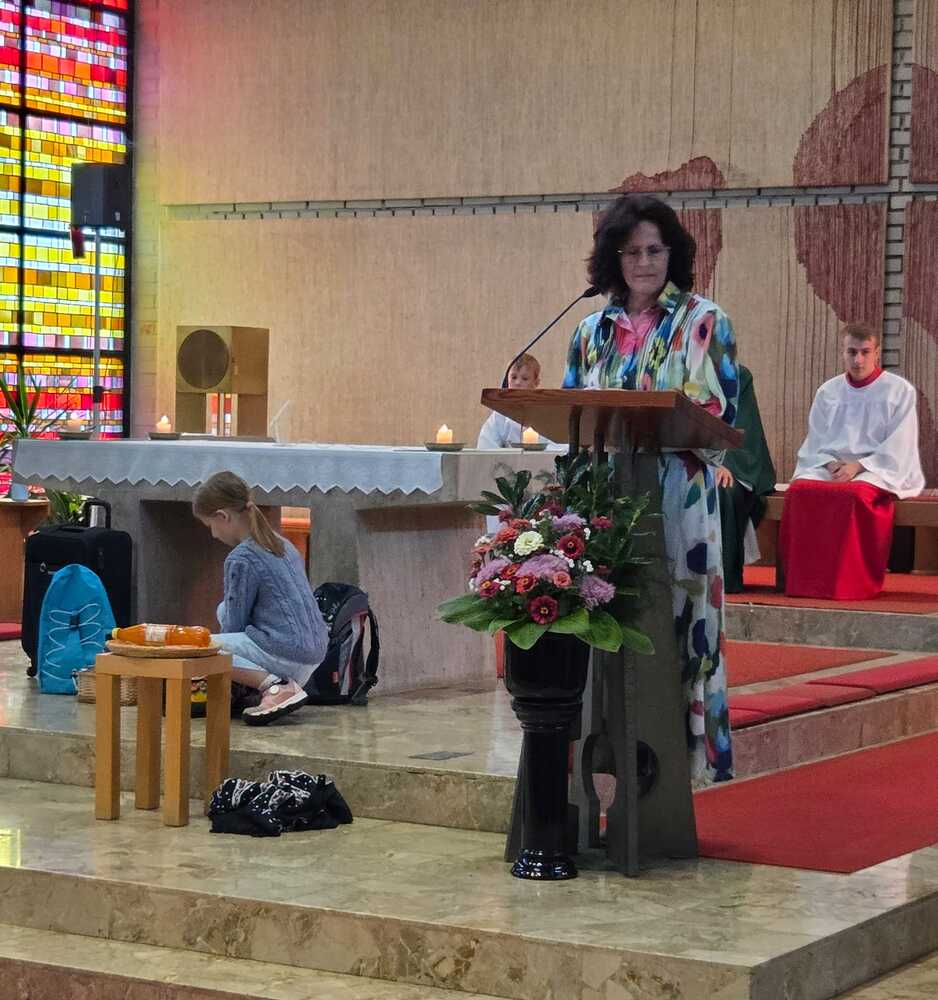 Gesegnet und gestärkt konnten die Gottesdienstbesucher:innen das neue Schul- und Arbeitsjahr beginnen. Alle Kindergarten-, Schultaschen, Unirucksäcke, Laptoptaschen...und Koffer wurden mit ihren Besitzer:innen mit dem Segen Gottes und dem Wissen "Ich bin nicht allein" begleitet. Als Erinnerung daran wurden kleine Segens- und Stärkungssymbole verteilt. Tina Schörgi lud alle ein wieder mehr zu segnen, was jede und jeder darf, und den Mitmenschen Gutes zu wünschen: durch ein Kreuz auf die Stirn beim Gute Nacht sagen, beim Anschneiden eines Laib Brotes, beim Abschied mit Weihwasser.... Alle Kinder erhielten kleine Weihwasserfläschchen und die Erwachsenen die Erinnerung, dass wir "Gott befohlen" sagen, wenn wir "tschüss" sagen, das vom französischen a dieu kommt oder "God be with you" beim Gruß "bye, bye".  Ein gemischter Chor hat die Feier wunderschön musikalisch gestaltet.