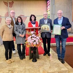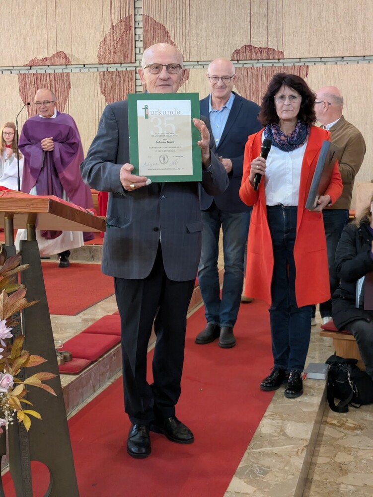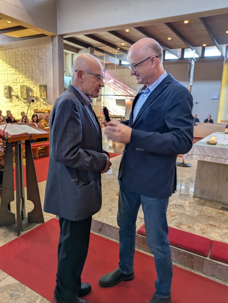 Hans Koch wurde nach dem Allerseelengottesdienst am 2.11. die goldene Ehrennadel der Mesnergemeinschaft überreicht. Unglaubliche 60 Jahre lang, auf den Tag genau, hat er diesen wertvollen Dienst in der Pfarre Lieboch geleistet. 50 Jahre lang alleine, seit 10 Jahren gibt es ein
