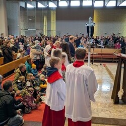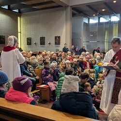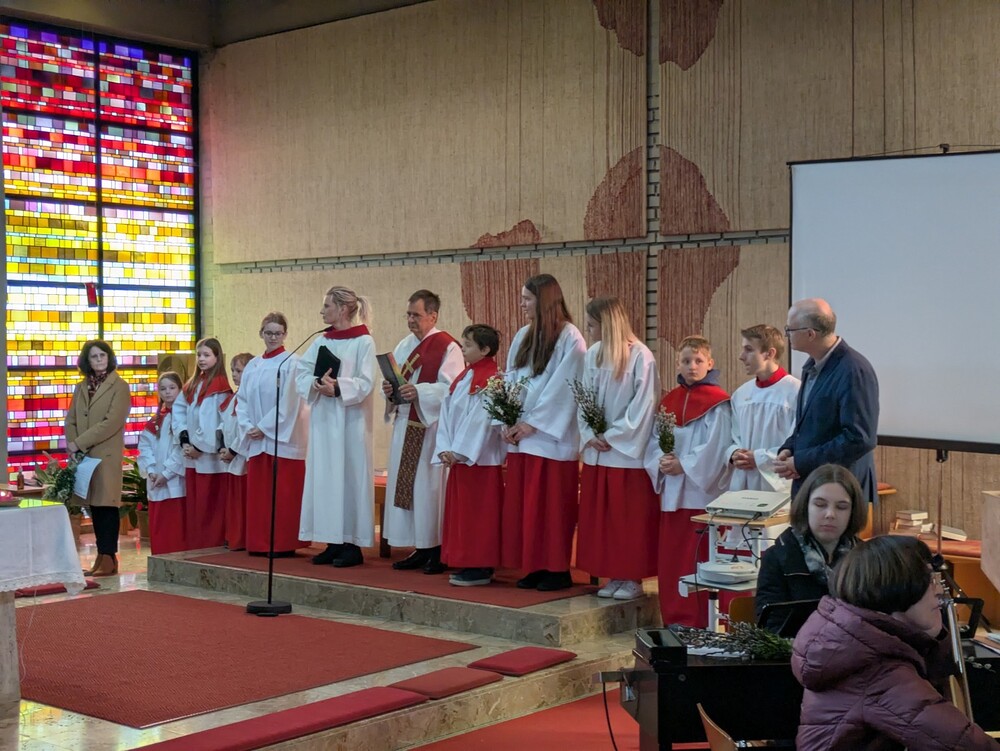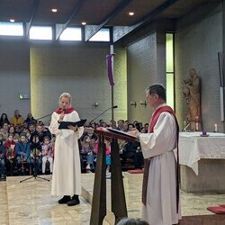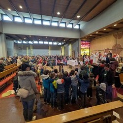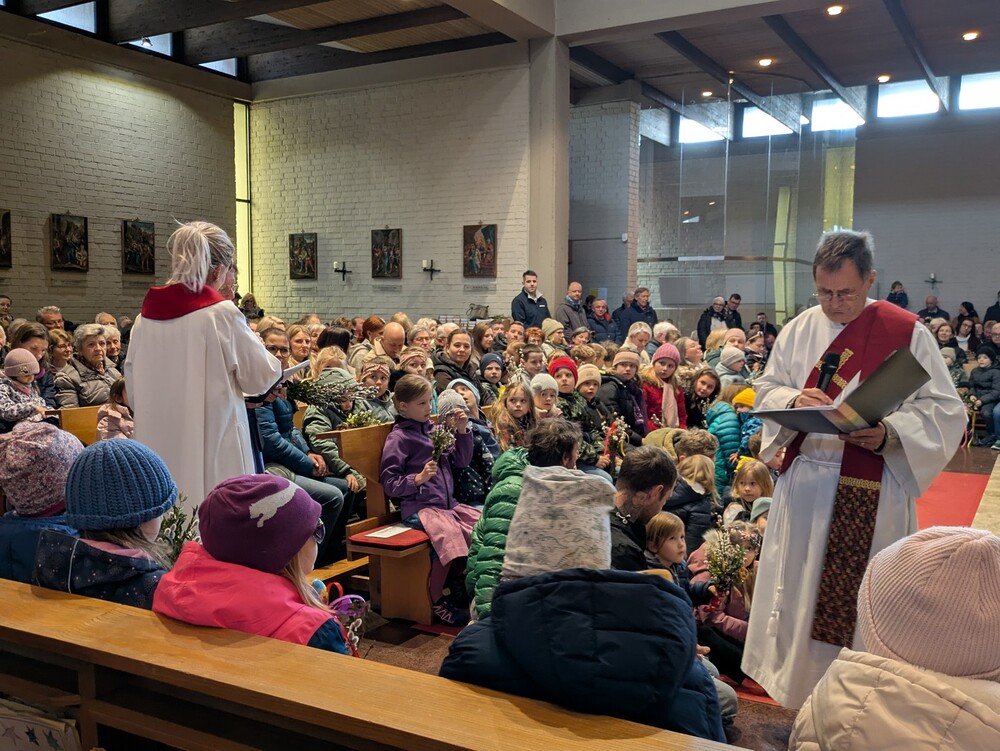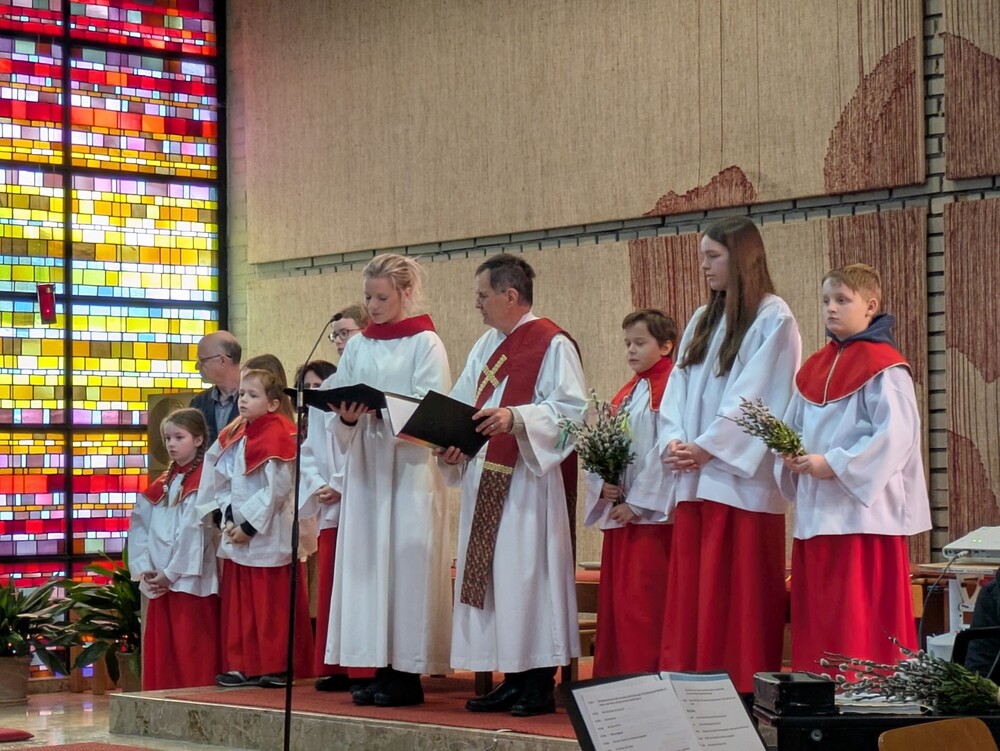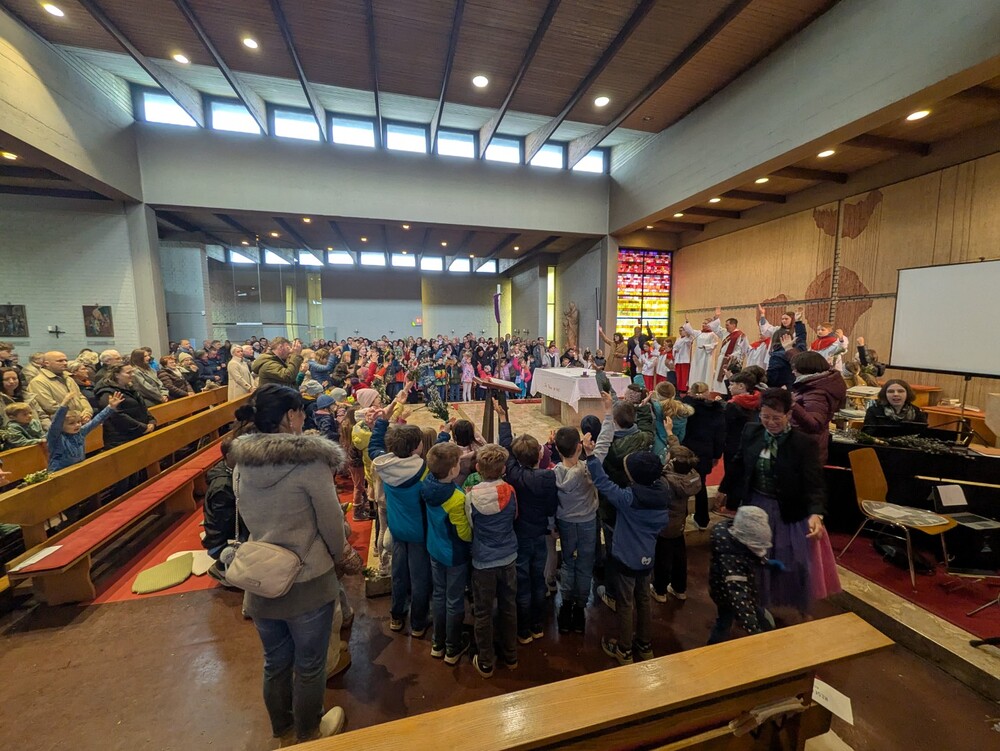 Die Passion, also die Leidensgeschichte, wurde in kindgemäßer Form bei diesem Familiengottesdienst mit verteilten Rollen vorgetragen und mit Bildern unterstützt. Die gesamte volle Kirche feierte diese schöne Wort-Gottes-Feier mit Segen für die Erstkommunionkinder und begeisterter Musik des Kilichores unter der Leitung von Kathrin und Edith Müllerferli.