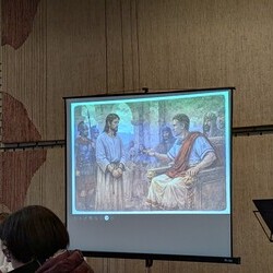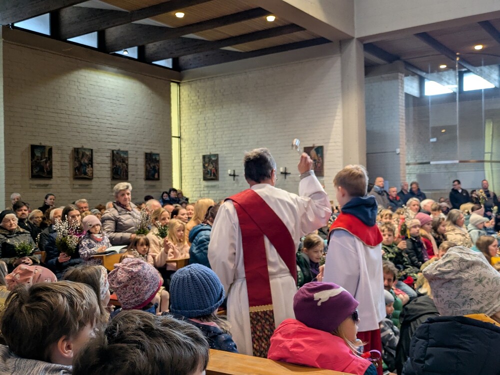 Wir zogen mit den Kindern, die ein Spalier bildeten und Jesus mit den Palmbuschen zugewunken und gesungen haben, ein. Diakon Franz Habith und Pastoralreferentin Ines Kvar interviewten einige „Jerusalemer Bürger_innen“ zu ihrer Meinung zu diesem Jesus von Nazareth. Das war eine spannende neue Form anstatt der Predigt und ging der Frage nach, wer dieser Jesus ist.