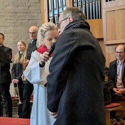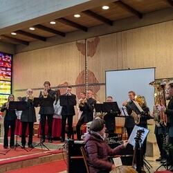 Aufgrund der Wetterlage wurde die Feier in die Kirche verlegt. Eine große Abordnung der Marktmusikkapelle fand auch in der Kirche Platz und trug zur Feier wesentlich bei.