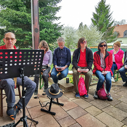 Das Ziel des Tages war die Marienkapelle im Kaiserwald. Dort feierten wir um etwas nach 11:00 Uhr einen Gottesdienst und ließen den wunderbaren Vormittag anschließend bei herrlichem Wetter und einer kleinen Agape ausklingen.