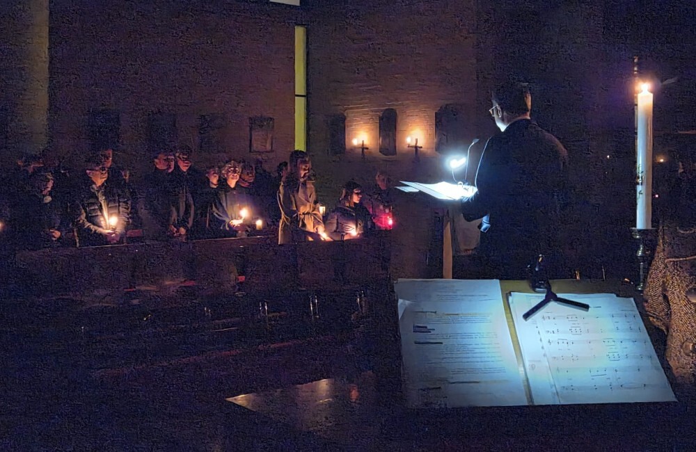 Eine Wortgottesfeier mit Kommunion in der Osternacht mit Diakon Wolfgang Garber und dem Kirchenchor Prima Musica Lieboch.