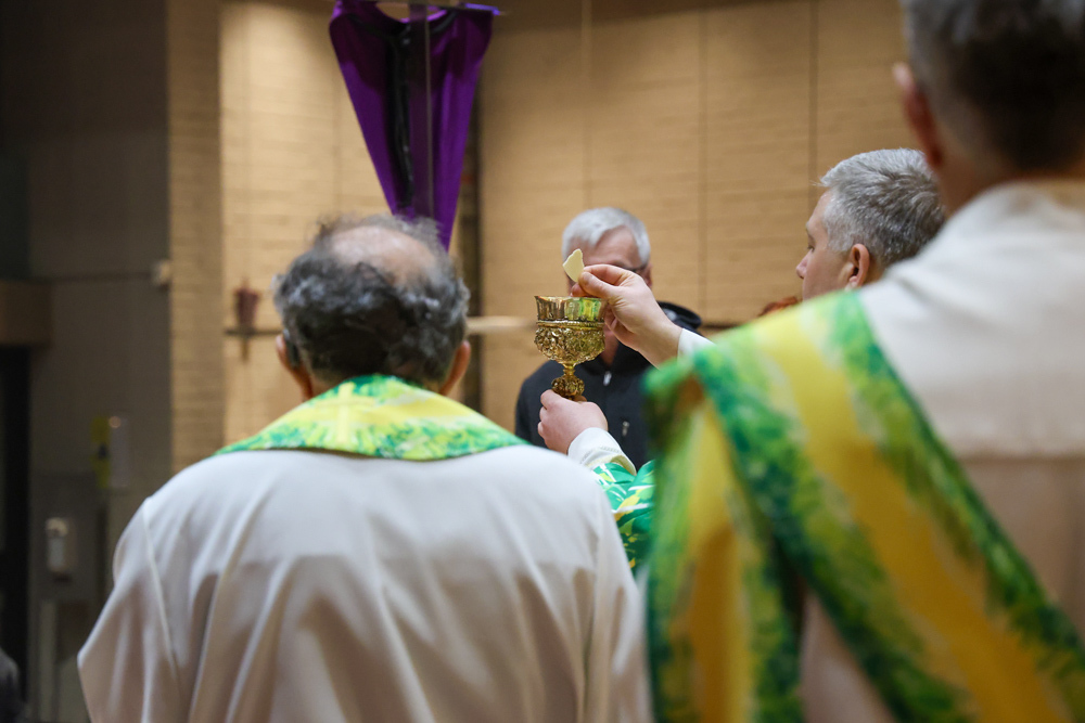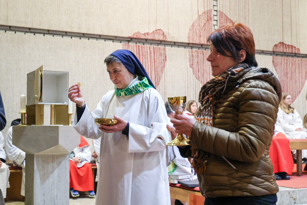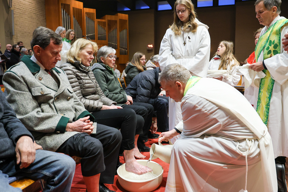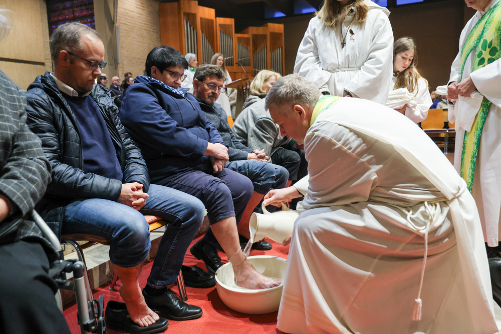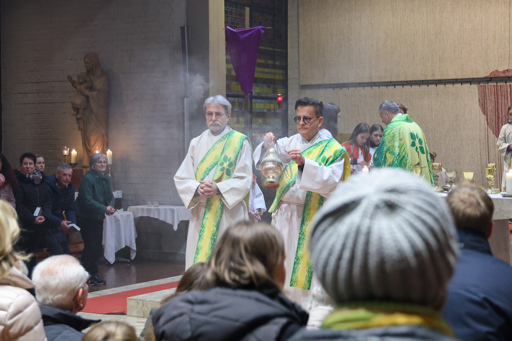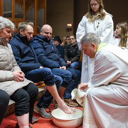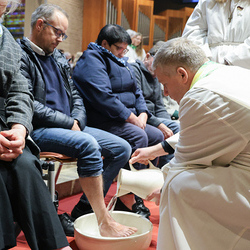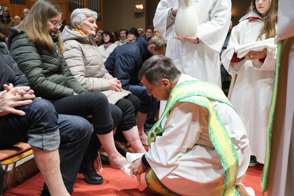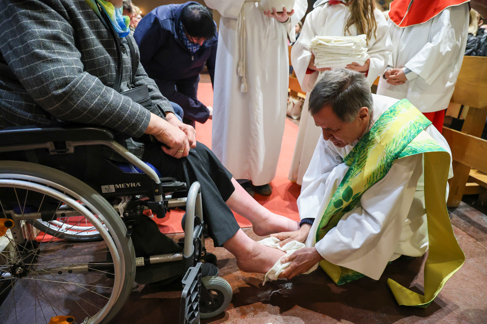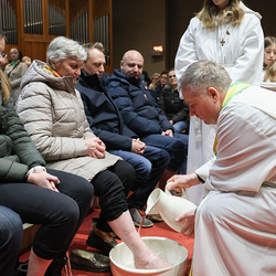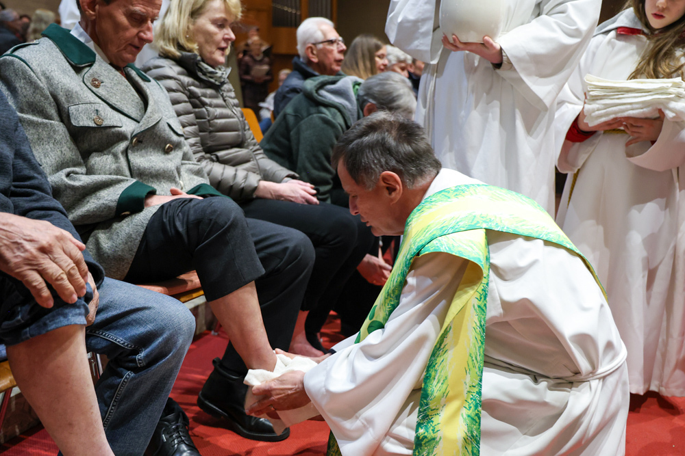 Bei diesem Mahl nahm Jesus das Brot, brach es, reichte es seinen Jüngerinnen und Jüngern und sagte: „Das ist mein Leib, der für euch hingegeben wird.“ Doch Jesus ging noch einen Schritt weiter: Er wusch die Füße seiner Freunde – nicht als Zeichen von Macht, sondern von Liebe und Dienstbereitschaft. Deshalb wurden stellvertretend zwei Personen jeder Pfarre von Pfarrer Claudiu Budău und Diakon Franz Habith die Füße gewaschen.