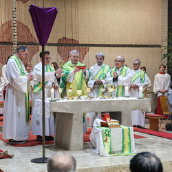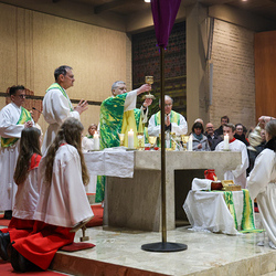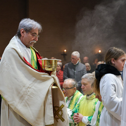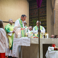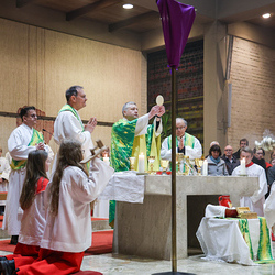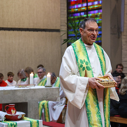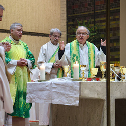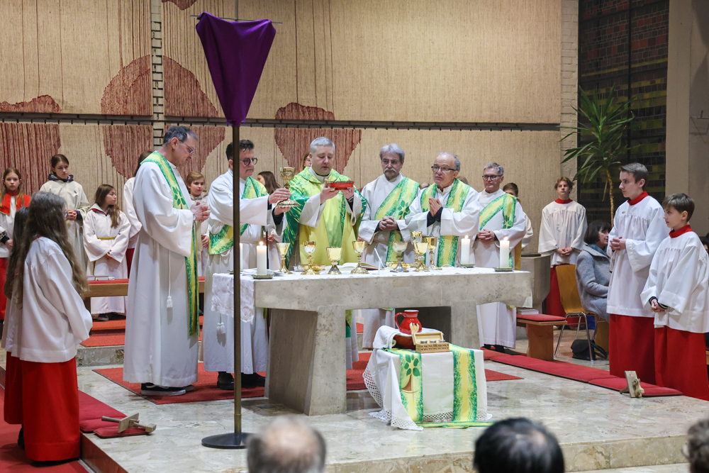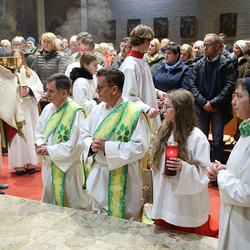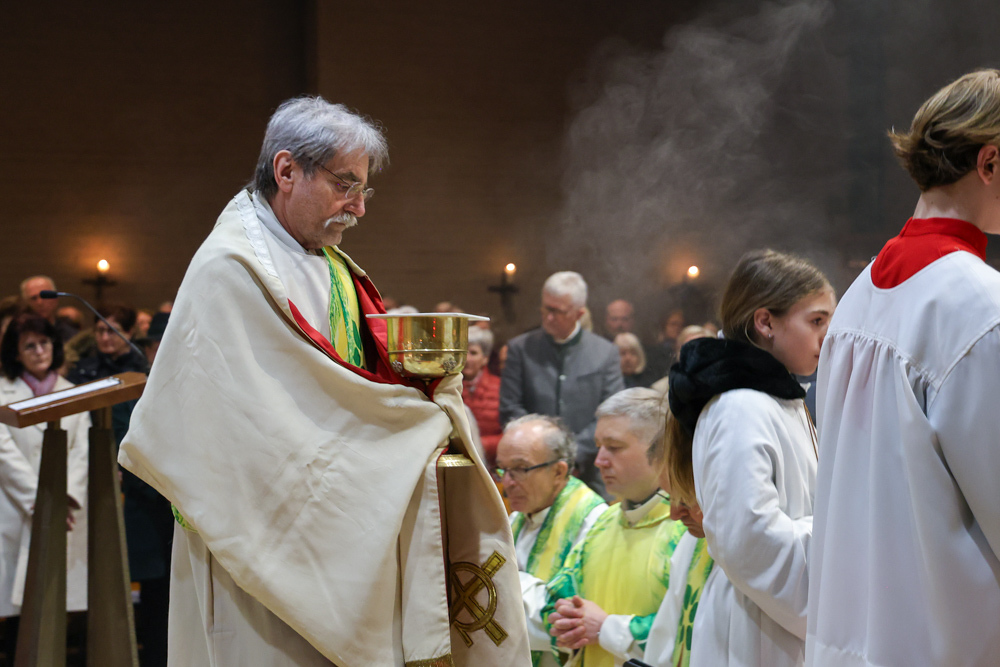 Musikalisch wunderbar umrahmt wurde die Feier vom Seelsorgeraumchor unter der Leitung von Siegfried Kager. Im Altarraum feierte unser gesamtes Seelsorgeteam sowie die Diakone mit. Nicht zu vergessen die etwa 20 Ministrantinnen und Ministranten aus unseren Pfarren. Auch Lektoren und Kommunionspenderinnen aus allen sechs Pfarren gestalteten die Feier mit.