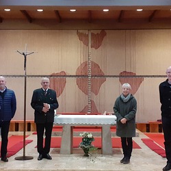 Hans Koch wurde für 55 Jahre Mesnerdienst und viele andere Dienste in der Pfarre Lieboch mit einer bischöflichen Urkunde und einem Geschenk der Pfarre bedankt. Erwin Schörgi übernimmt dankenswerterweise die Leitung des Mesnerteams.