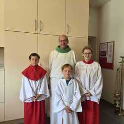 Wer war bei der Fronleichnamsprozession dabei (als wir beim Sorger vorbeimarschiert sind)?