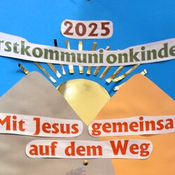 "Mit Jesus gemeinsam auf dem Weg" sind 15 Kinder der Volksschule Tobelbad, die sich mit ihrer Religionslehrerin Katrin Oswald auf die Erstkommunion vorbereiten. Mit dem Kyrie und dem fürbittenden Gebet bitten sie Eltern, Freunde und die Pfarrgemeinde sie auf diesem Weg zu begleiten. Vikar Norbert Glaser erinnert daran, dass sie schon seit der Taufe Kinder Gottes sind.