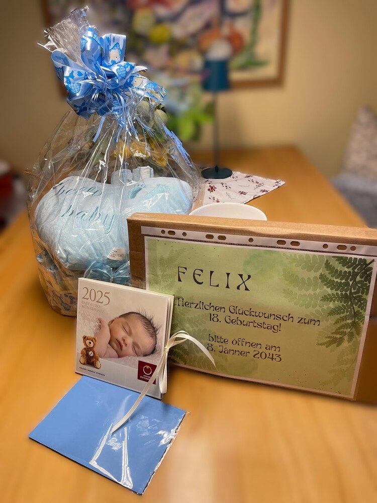 Hallo, ich heiße FELIX. Meine Mama Vicky ist Pastoralrätin (Verkündigung) in der Pfarre Tobelbad. Wir - Mama, Papa und ich - bekamen in der vorigen Woche Besuch von Gerlinde, Ines und Margret. Sie brachten Grüße vom Pastoralen Pfarrteam und von den Hauptamtlichen des Seelsorgeraums mit. Natürlich auch Geschenke. Fotos weiter unten!
