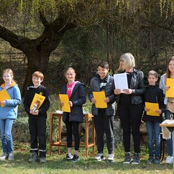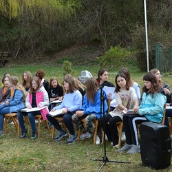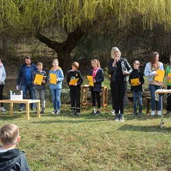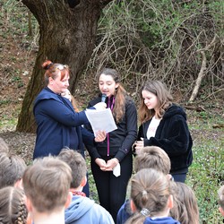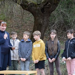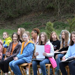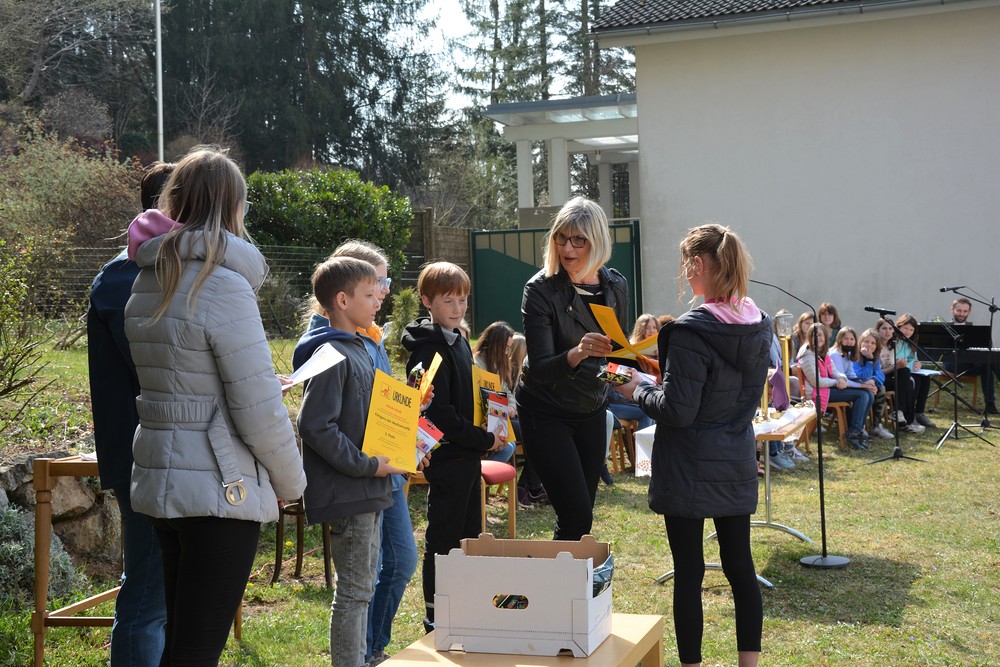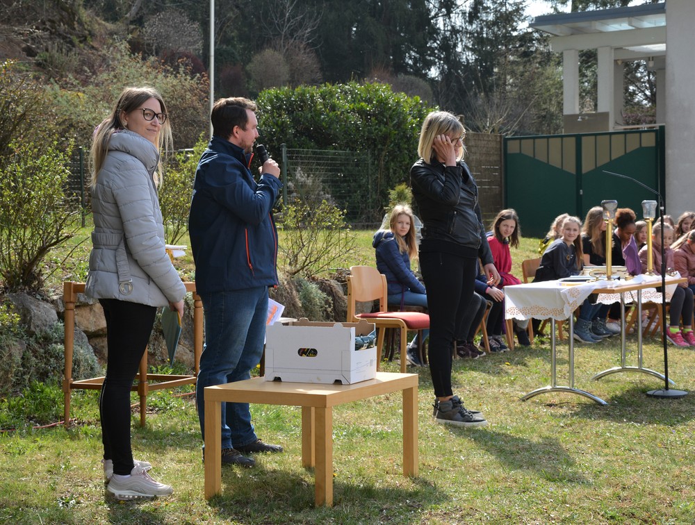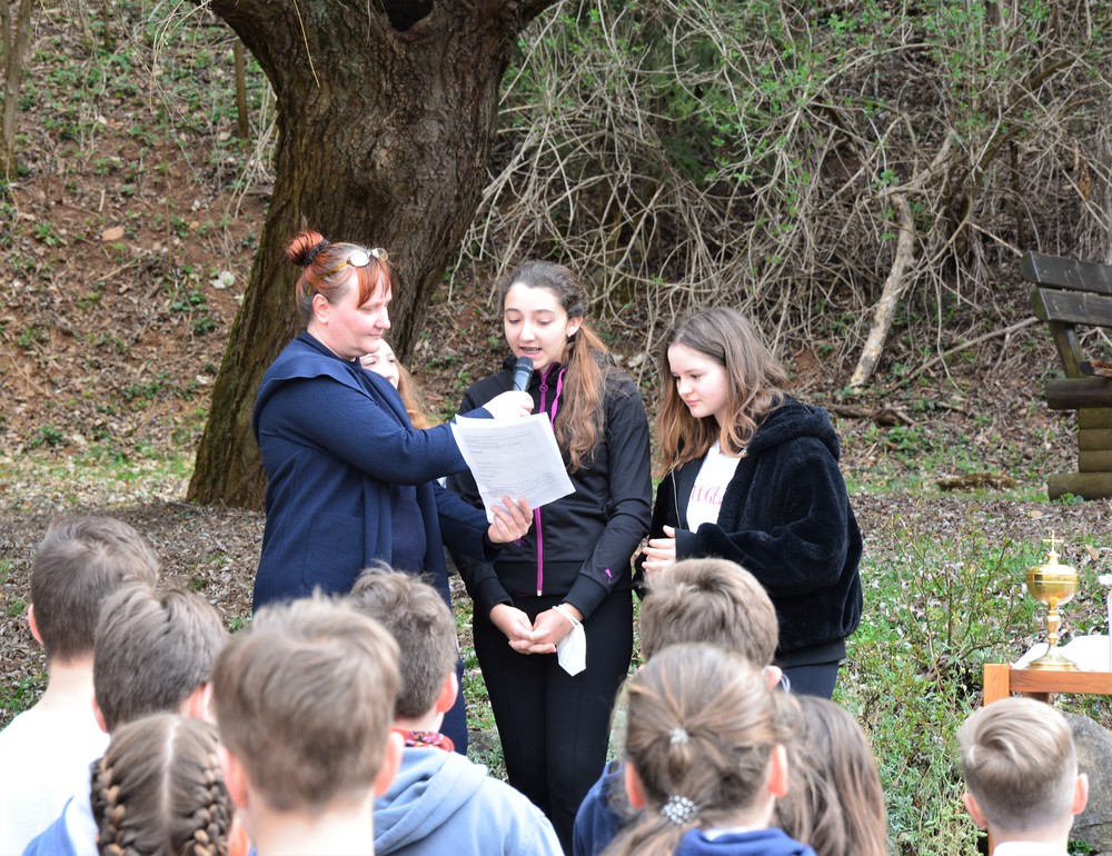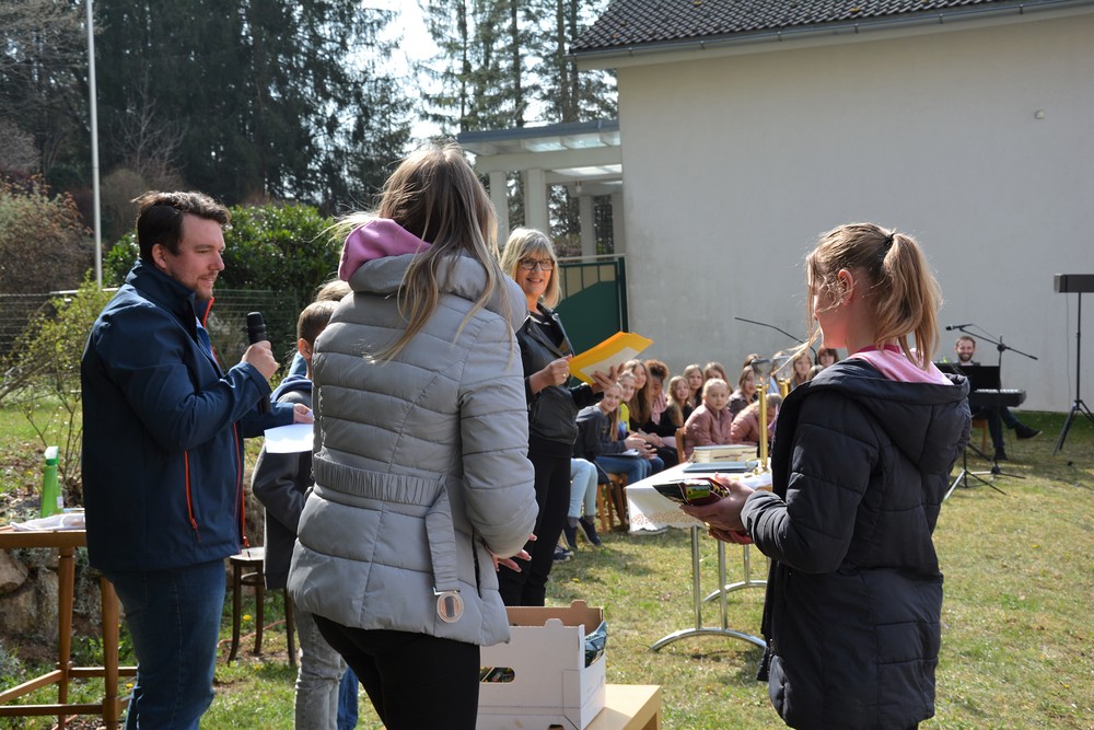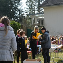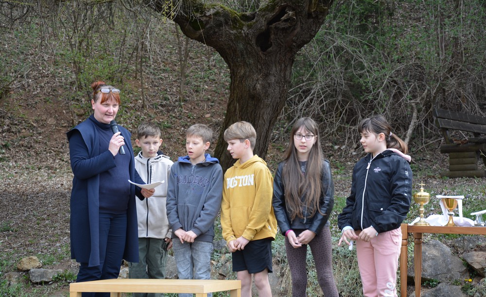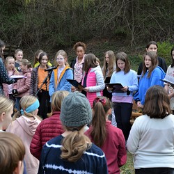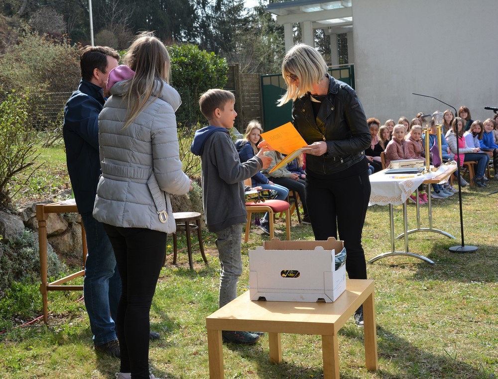 330 Kinder auf unserem Kirchplatz. Sie wallfahren jedes Jahr (Ausnahme Coronazeit) von der Privaten Neuen Mittelschule in Dobl über den Waldweg durch die Johannessiedlung bis zu unserer Pfarrkirche. Viele Schüler:innen kommen aus unserem Pfarrgebiet.
