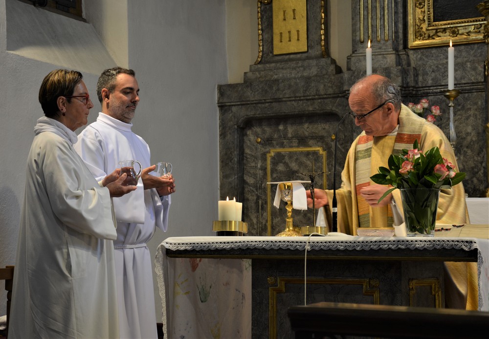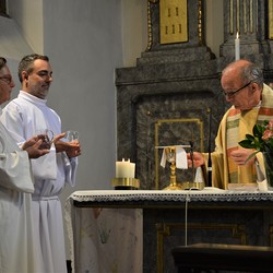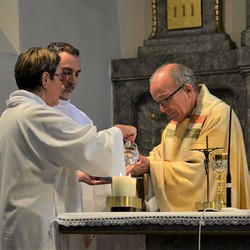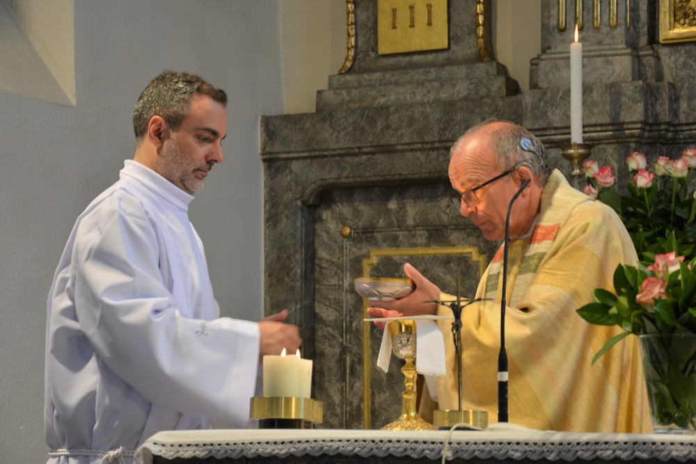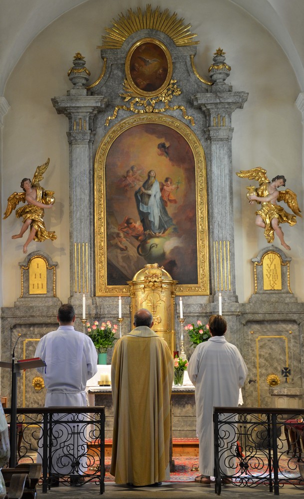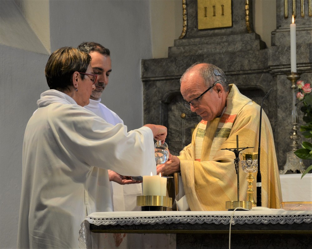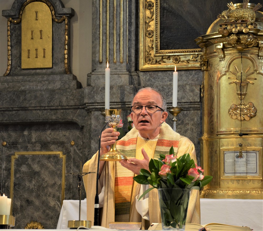 Dreifaltigkeit ist für uns römisch-katholische Christinnen und Christen ein zentraler Glaubensinhalt. Vikar Norbert Glaser wies in seiner Predigt darauf hin, dass wir uns mit jedem Kreuzeichen und z.B. im Glaubensbekenntnis dazu bekennen. Der Glaube an den dreieinigen Gott unterscheidet das Christentum vom Judentum und vom Islam. Margret Hofmann
