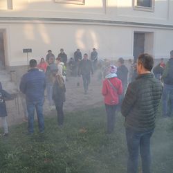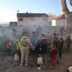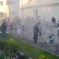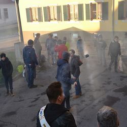 Karsamstag, 16. April - 7.00 Uhr Nach zweijähriger Coronapause durfte wieder das Weihfeuertragen durchgeführt werden. Diakon Wolfgang segnete schon zeitig in der Früh das Feuer, sowie die Trägerinnen und Träger bei der Pfarrkirche.