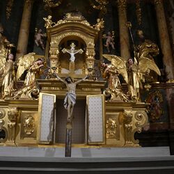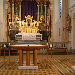 - In der Pfarrkirche übertrug eine Kommunionhelferin das Allerheiligste vom Hochaltar zum Herz-Jesu-Altar.