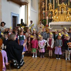 - Die Kinder des Pfarrkindergartens mit ihren Pädagoginnen und Betreuerinnen brachten IHRE Erntekrone mit.
