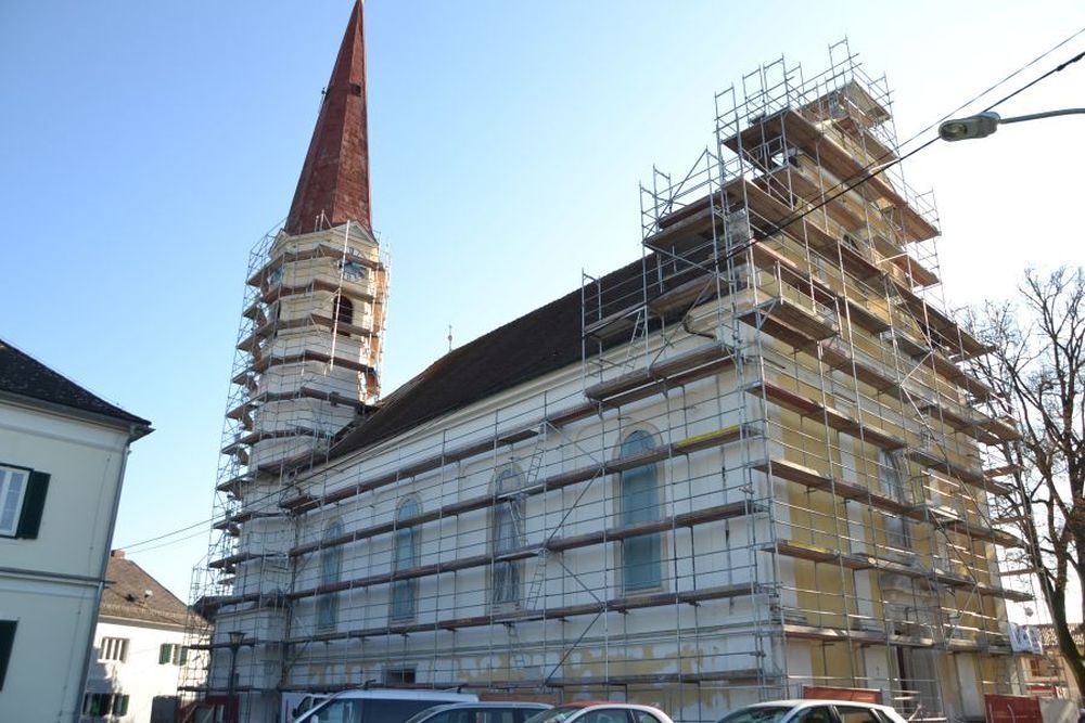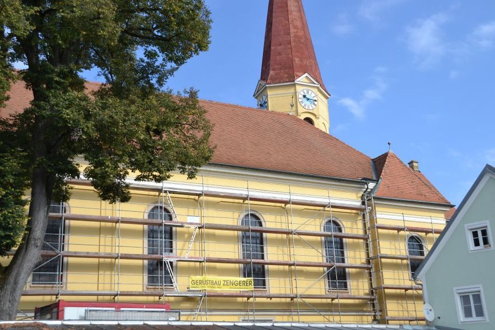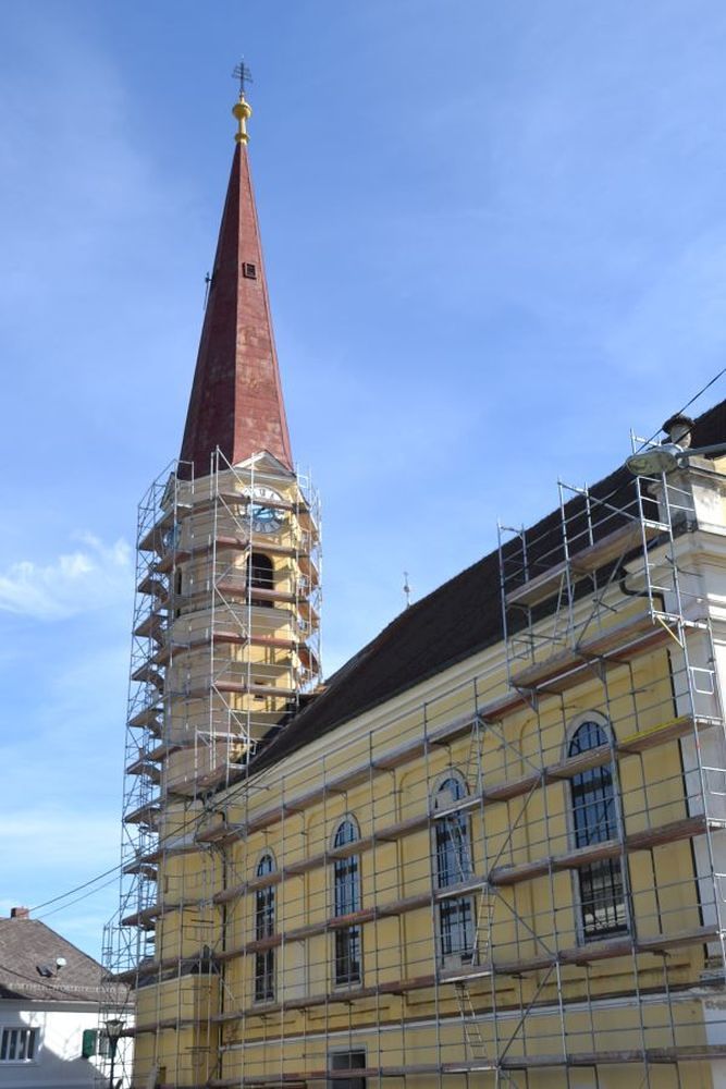 In der zweiten Hälte des September 2016 begannen die Renovierungsarbeiten der Außenfassade und der Kirchturmspitze unserer Pfarrkirche.