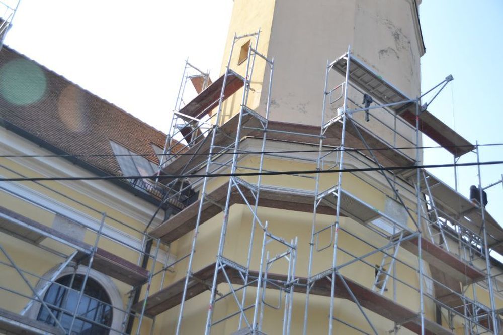 - Gerüstaufbau für die Erneuerung des Turmbleches