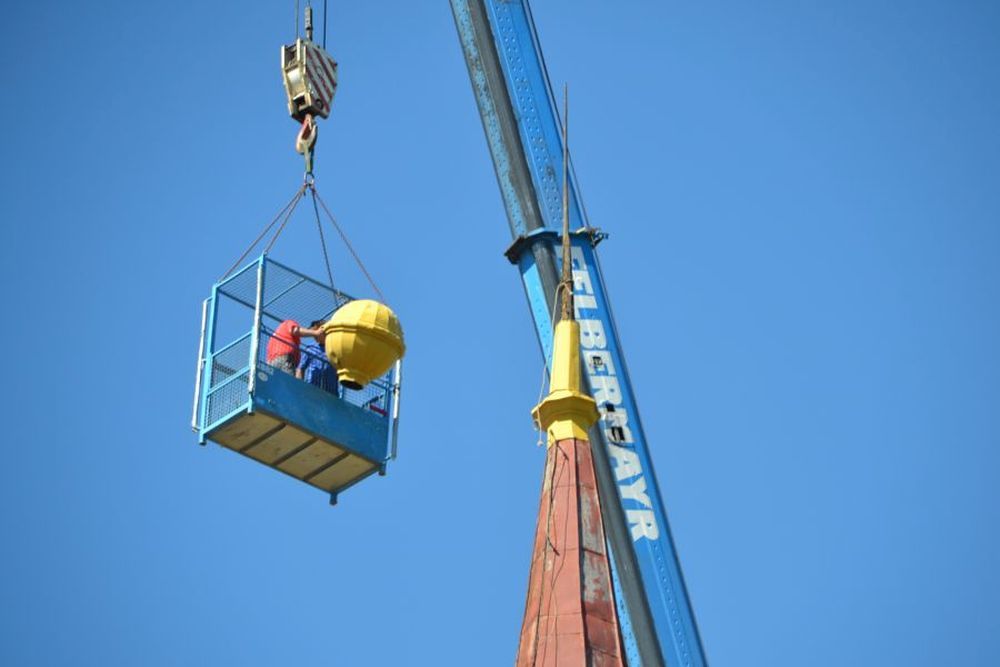 - 9. Juni - Abnahme der Teile der Turmspitze