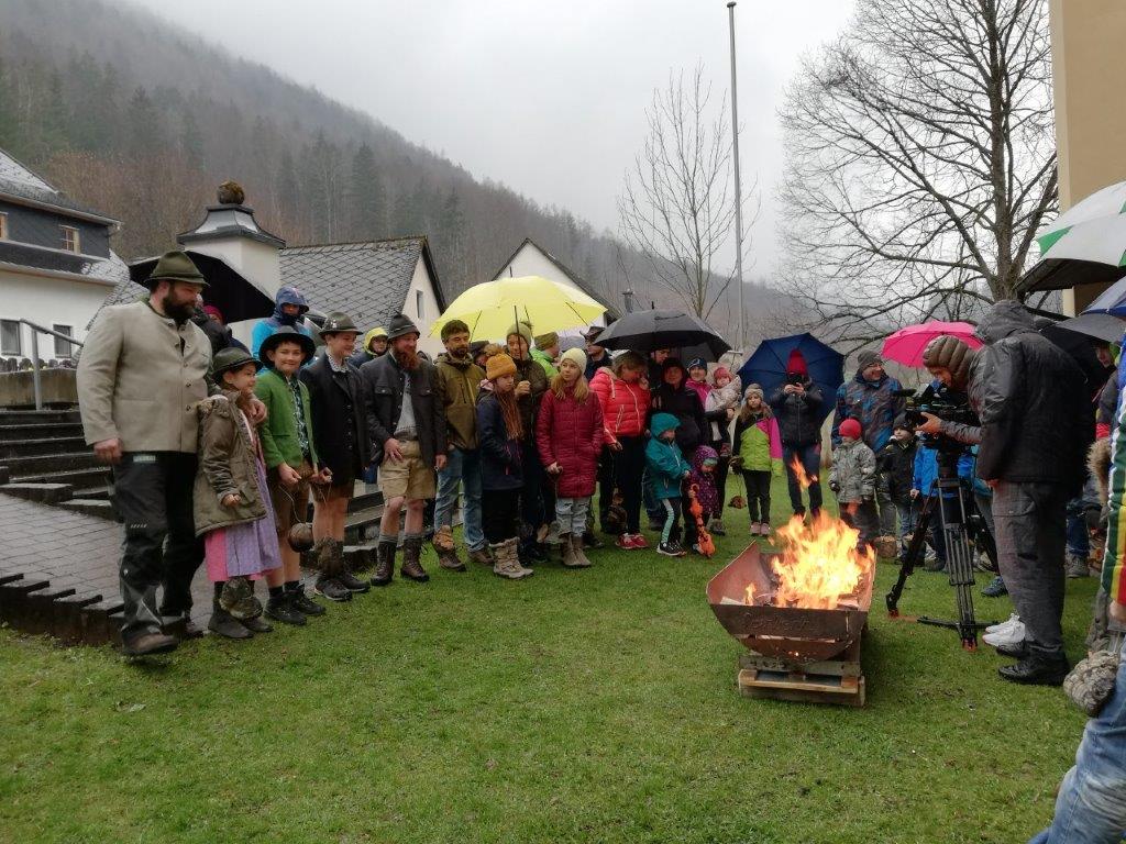 Großer Andrang herrscht alljährlich am Karsamstag vor den Pfarrkirchen bei der Segnung des Weihfeuers, wo die mit Draht befestigten, getrockneten Baumschwämme im Feuer angezündet werden.