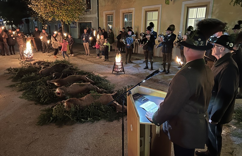 Wurde das leuchtende Kreuz über einem kapitalen, weißen Hirsch dem Leben des Heiligen Hubertus nicht einfach dazu gedichtet, indem man seine Legende mit der des heiligen Eustachius vermischte? Ja, so war es wohl. Aber die Jägerschaft hat ja mit dieser Vermischung der Lebensbeschreibungen klar gemacht, dass sie sich auch ausrichten will auf das KREUZ Jesu Christi und dass es ihr im Letzten (bei allen Trophäen dieser Welt) um einen unvergänglichen Preis geht.