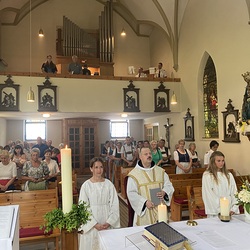 Wir sind froh, dass dank der tatkräftigen Mithilfe vieler Unterlaussinger regelmäßig Gottesdienste in unserm kleinen Kirchlein in Unterlaussa stattfinden können.