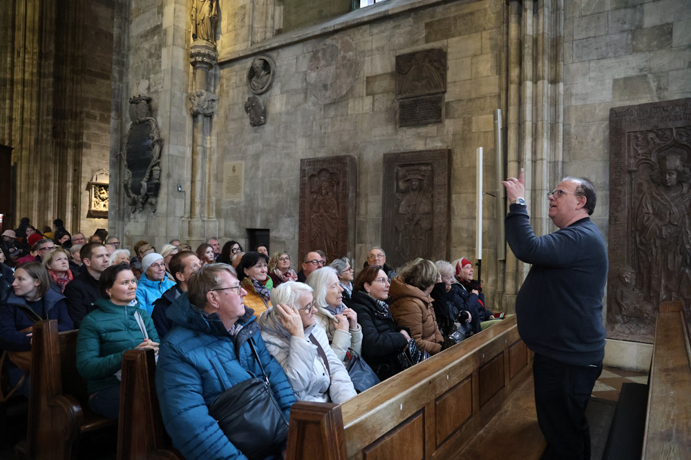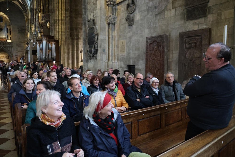 Anschließend legten wir eine Mittagspause in der „Frommen Helene“ ein, bevor es weiter zum Stephansdom ging. Auch dort erhielten wir eine sehr ansprechende Führung, zuerst durch den Kirchenraum und anschließend durch die Katakomben.