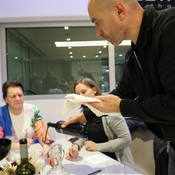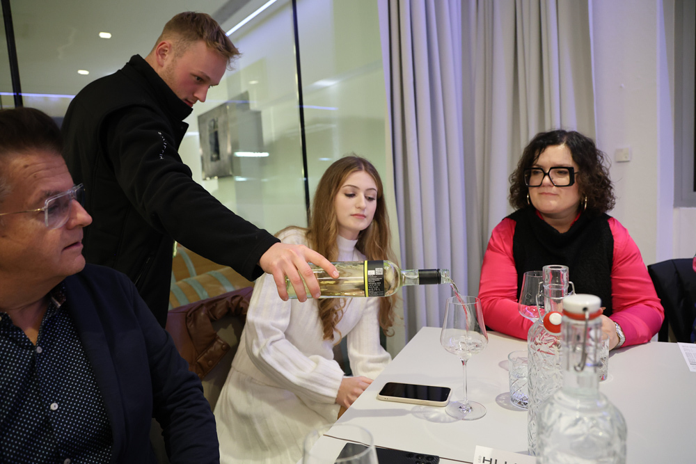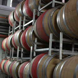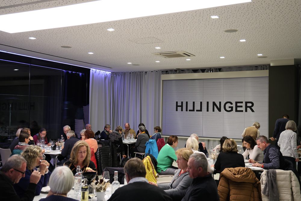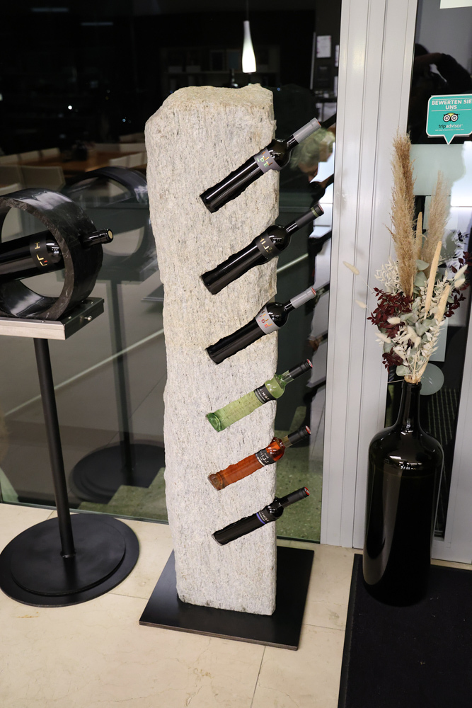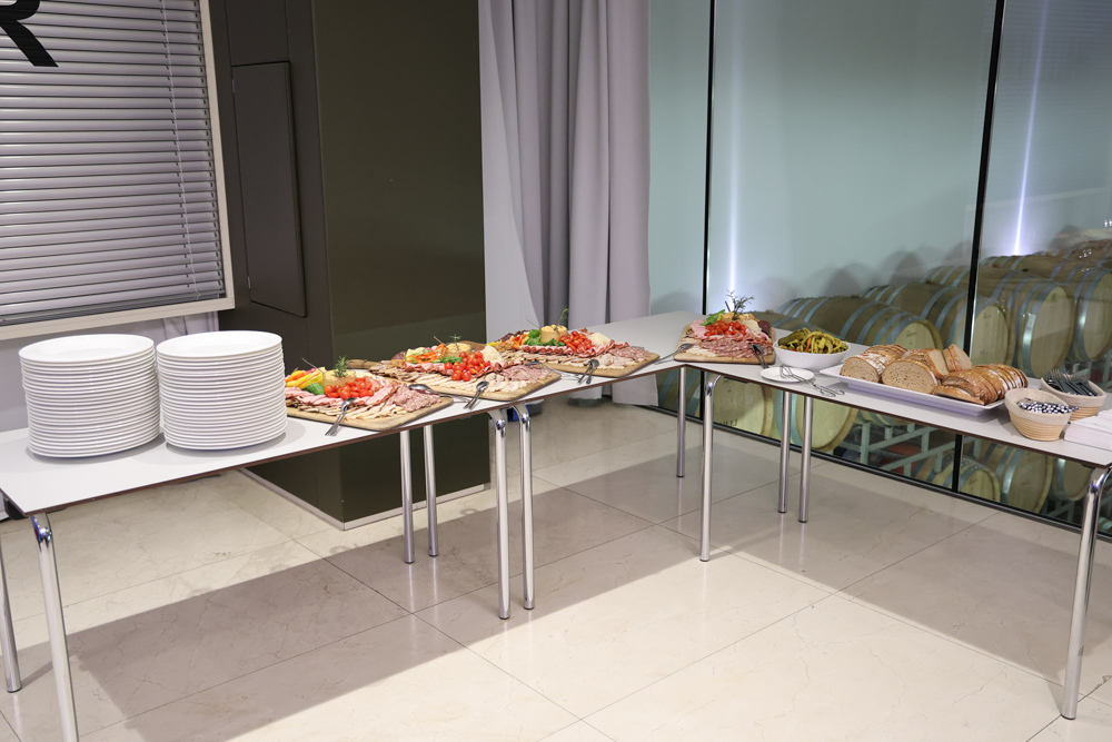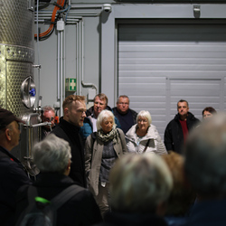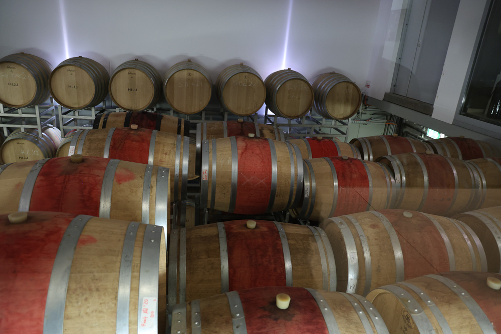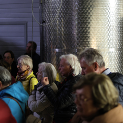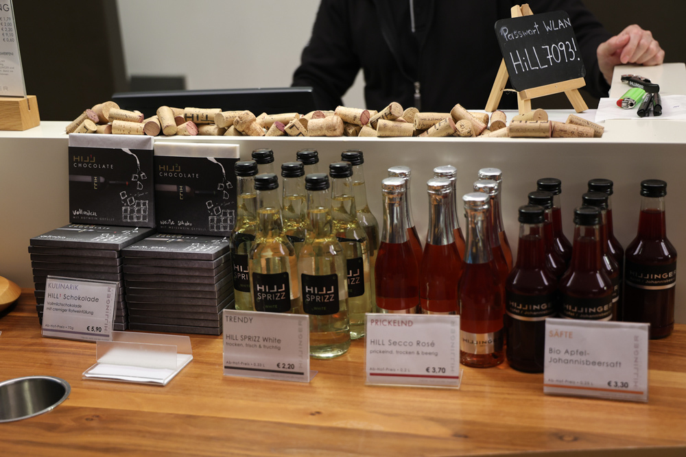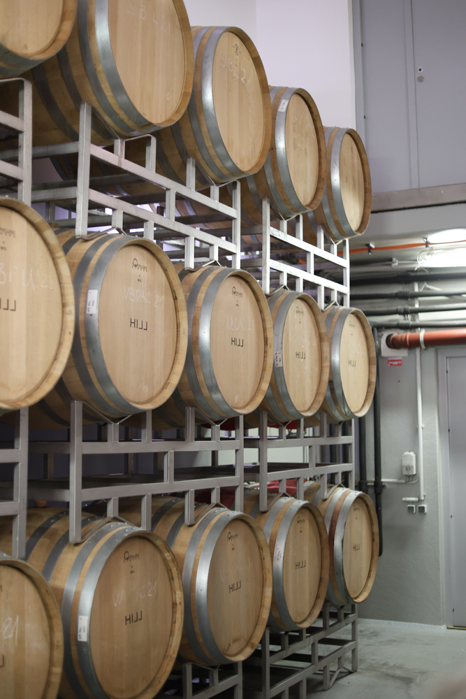 Zum krönenden Abschluss fuhren wir weiter nach Jois im Burgenland zum Weingut Leo Hillinger. Zuerst wurden wir durch den Weinkeller geführt. Zwischen Stahltanks und Barriquefässern konnten wir alle möglichen Fragen zum Wein und Weingut stellen. Im Gebäude darüber konnten wir mit Blick auf den Weinkeller vier Weine verkosten. Zur Stärkung durfte eine Jause dazu nicht fehlen.