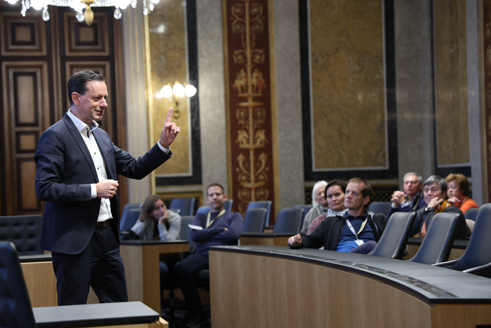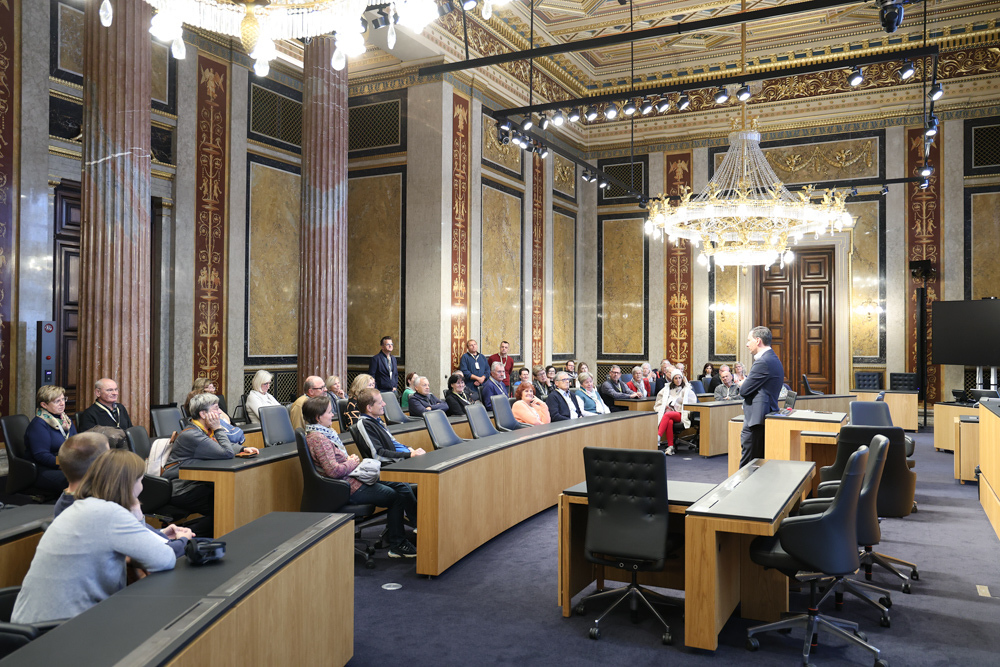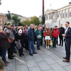 Ganz früh machte sich am 11. November 2023 ein voller 50er-Bus aus dem Seelsorgeraum auf den Weg nach Wien. Dort angekommen empfing uns der in unserem Seelsorgeraum wohnende Nationalratsabgeordnete Ernst Gödl. Er führte uns etwa zweieinhalb Stunden durch das im neuen Glanz erstrahlende, 140 Jahre alte österreichische Parlamentsgebäude und erklärte auch seine Aufgaben und Arbeitsweise als Nationalratsabgeordneter.