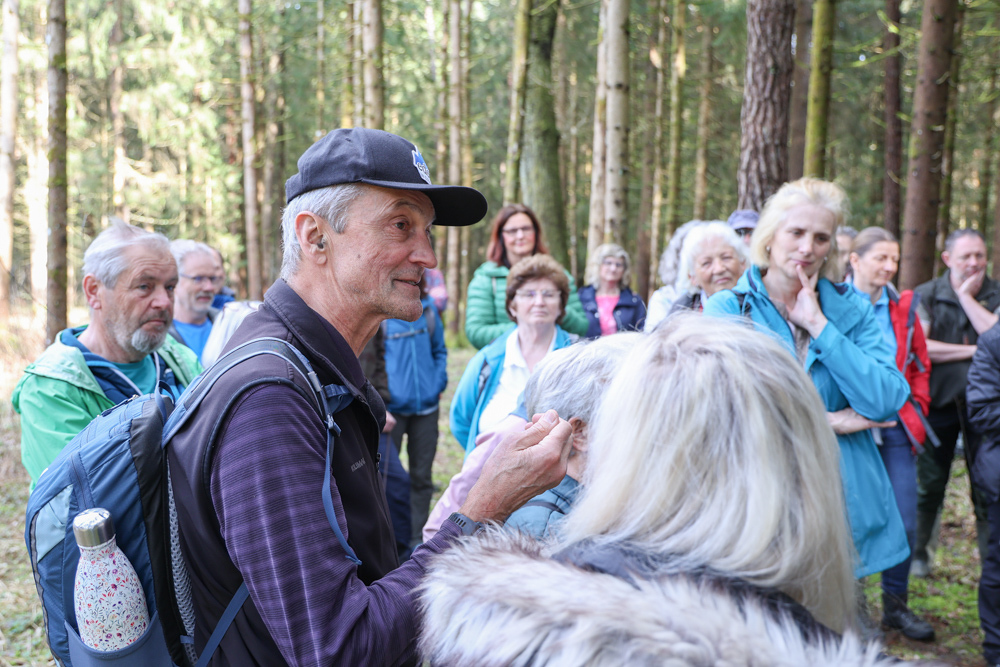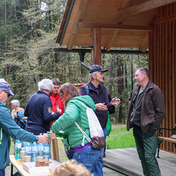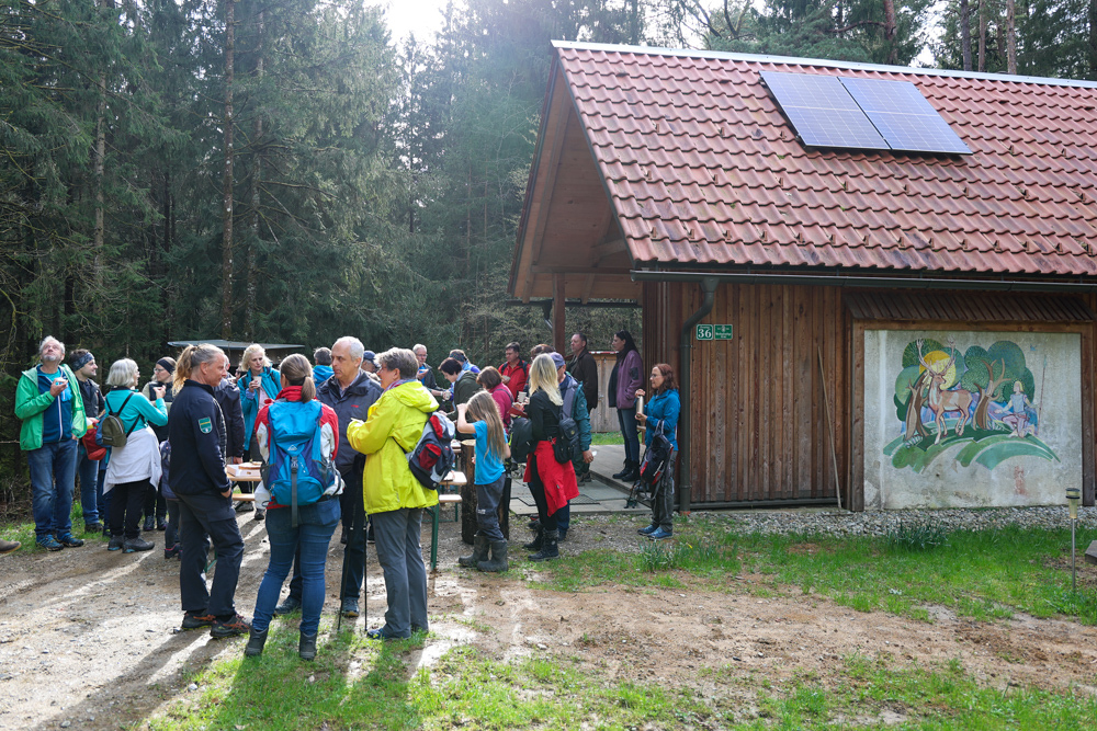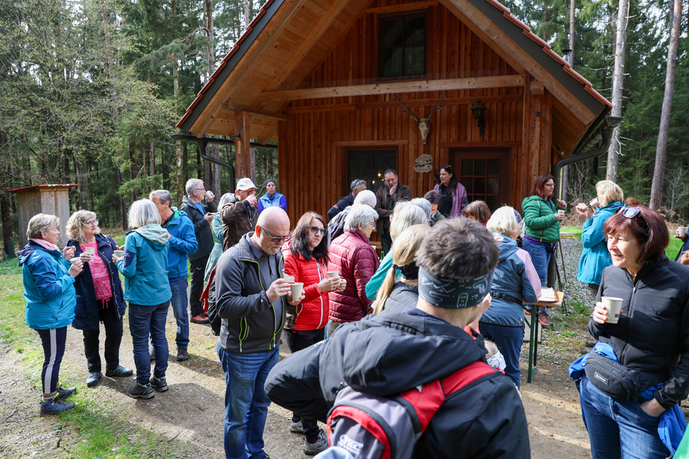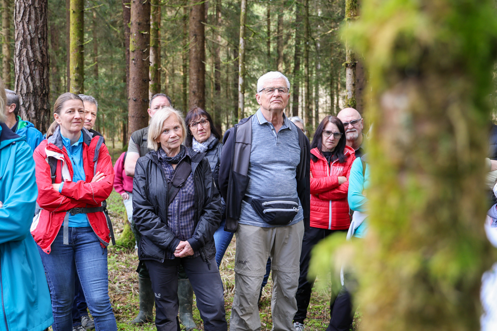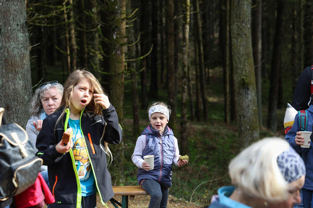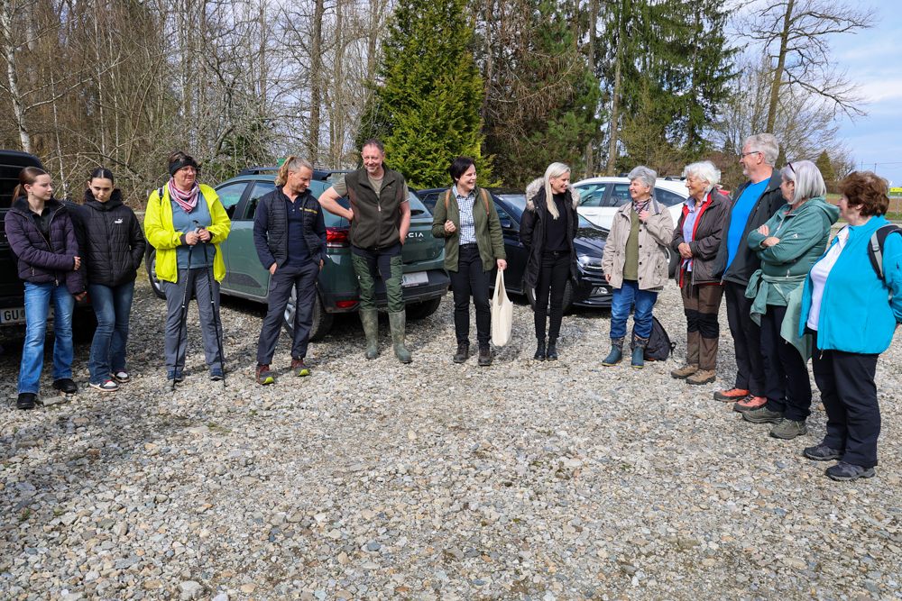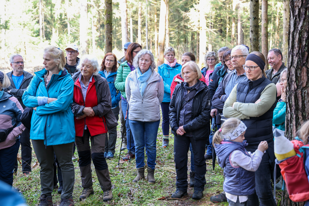 Bei strahlendem Sonnenschein trafen sich über 50 Naturbegeisterte am Sonntag, 30. März um 15:00 Uhr bei den Wundschuher Teichen. Auf dem Weg zum Woldteifl-Kreuz machten wir mehrmals Halt. So erzählten uns zwei Berg- und Naturwächter, ein Jäger sowie eine Försterin viel Interessantes über den Wald und wie sich der Frühling darin bemerkbar macht. Beim Woldteifl-Kreuz angekommen wartete eine kleine Stärkung auf uns. Natürlich durfte auch der spirituelle Aspekt nicht fehlen. Unsere Pastoralreferentin Ines Kvar gestaltete eine kurze Andacht beim Kreuz, bevor wir uns wieder auf den Weg zum Ausgangspunkt machten.