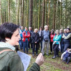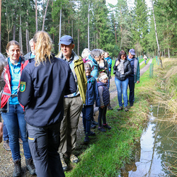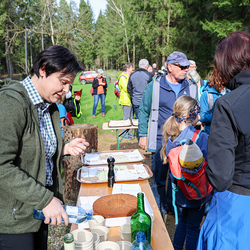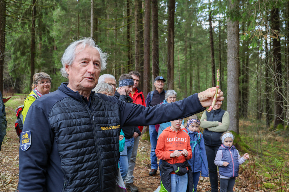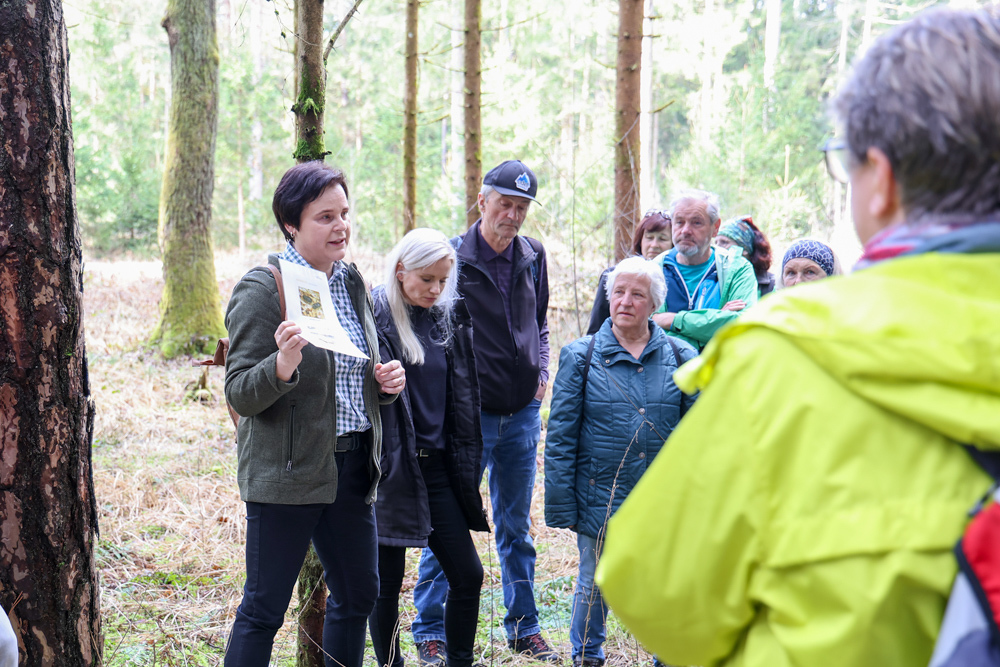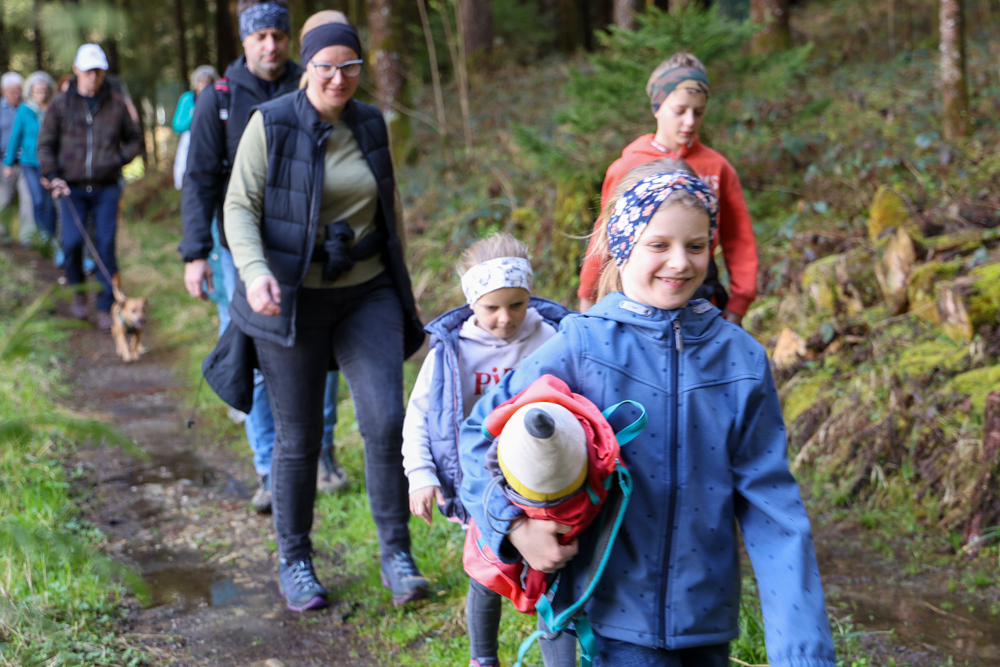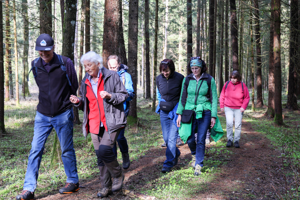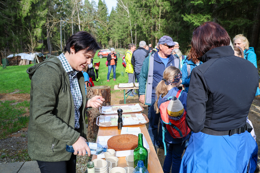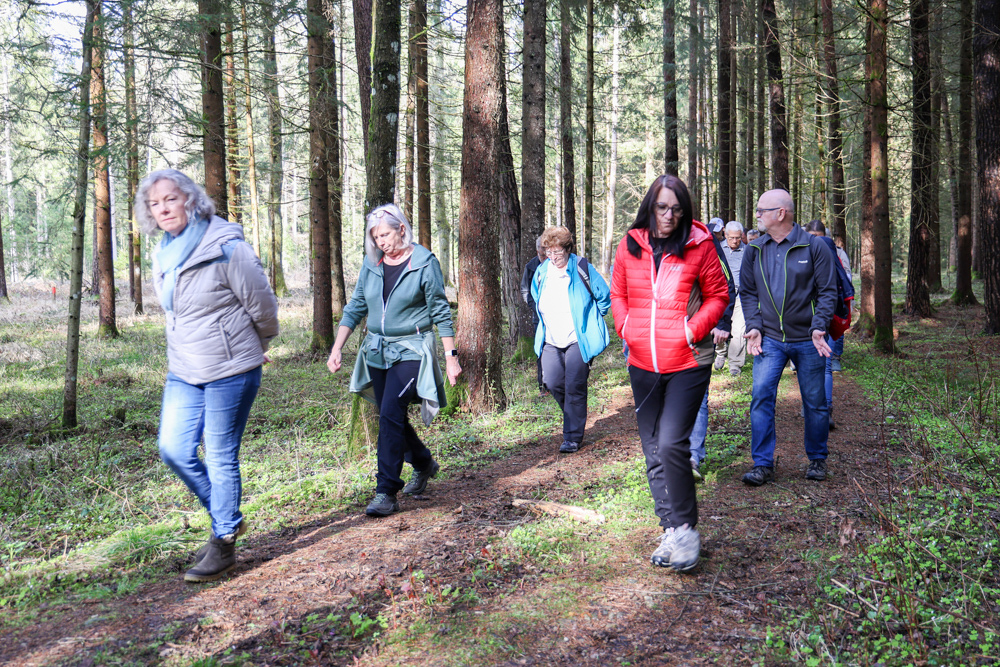 Bei strahlendem Sonnenschein trafen sich über 50 Naturbegeisterte am Sonntag, 30. März um 15:00 Uhr bei den Wundschuher Teichen. Auf dem Weg zum Woldteifl-Kreuz machten wir mehrmals Halt. So erzählten uns zwei Berg- und Naturwächter, ein Jäger sowie eine Försterin viel Interessantes über den Wald und wie sich der Frühling darin bemerkbar macht. Beim Woldteifl-Kreuz angekommen wartete eine kleine Stärkung auf uns. Natürlich durfte auch der spirituelle Aspekt nicht fehlen. Unsere Pastoralreferentin Ines Kvar gestaltete eine kurze Andacht beim Kreuz, bevor wir uns wieder auf den Weg zum Ausgangspunkt machten.