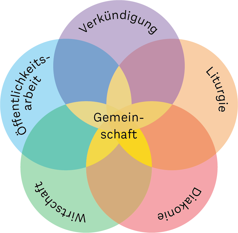 Vieles ist im Wandel, auch die Kirche. Doch was bedeutet Kirche vor Ort überhaupt? Du und ich – wir alle sind Kirche. In vielfältigen Tätigkeitsfeldern geschieht gemeinsam Großartiges. Diese lassen sich Bereichen zuordnen, die nachstehend etwas näher erläutert werden. Du kannst in unterschiedlicher Weise selbstbestimmt, entsprechend deiner eigenen Anliegen, Talente und Ressourcen mitgestalten und mitarbeiten, dort, wo du meinst, dich am besten einbringen zu können.